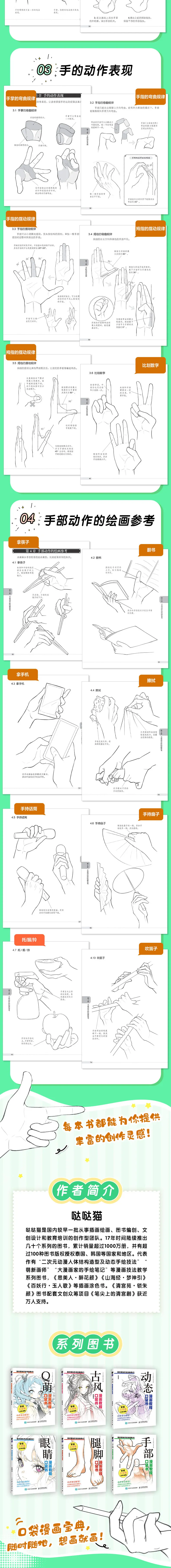 This book is part of the “Manga Tutorial Pocket Book” series, themed around the hand. The whole book consists of 4 chapters, which explain the structure of hands, the establishment of hand models, the expression of hand movements, and the drawing reference of hand movements in easy to understand language. The case studies and drawing techniques created in this book can provide readers with rich creative inspiration! This book is rich in content, small in size, easy to carry around, and suitable for novice manga readers and learners.